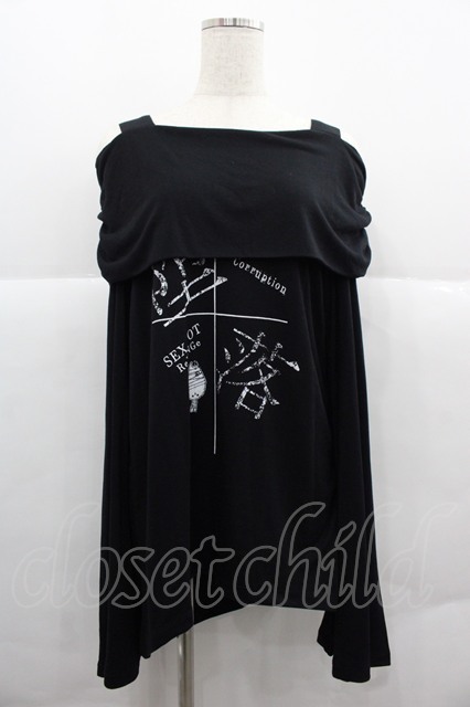 SEX POT ReVeNGe / 堕落SHOULDERデザインカットソー 黒X I-25-12-06-057-SP-TO-SA-ZI [戻る]