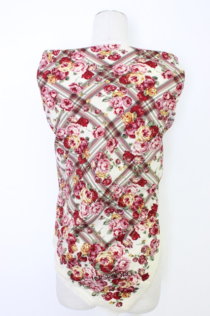 INGEBORG / 花&チェック大判スカーフ ベージュ T-25-12-28-026-LO-ZA-SA-ZT [戻る]