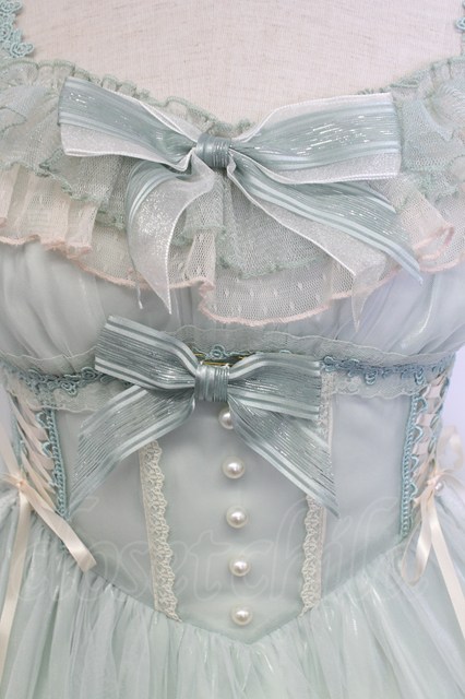 Mie Ye / 鈴蘭刺繍チュールサイド編み下げジャンパースカート ミント T-25-12-31-008-0-OP-SA-ZT [戻る]