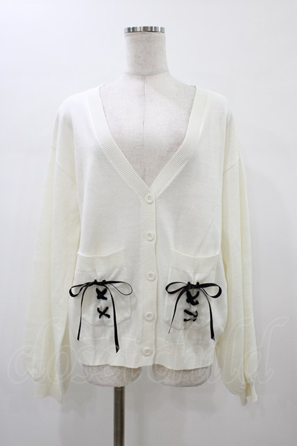 MA*RS / レースアップりぼんポケット付きカーディガン Free オフ H-26-01-07-1048-EL-TO-NS-ZH