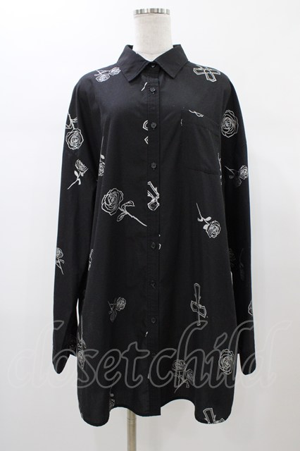 Jamie エーエヌケー / ハートクロス柄長袖BIGシャツ M ブラック H-26-01-07-1042-LO-BL-NS-ZH [戻る]