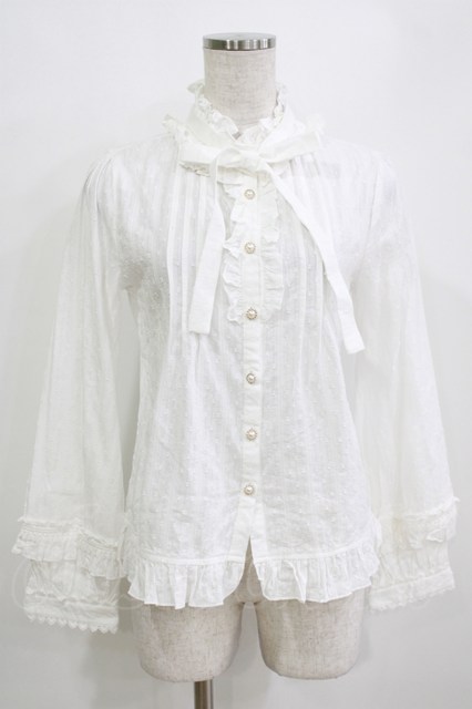 Lilia(海外ロリータブランド) / ドビーリボンブラウス S オフ H-26-01-07-052-PU-BL-NS-ZH [戻る]