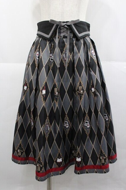 axes femme kawaii / ダイヤ柄襟付きスカート M ブラック I-25-12-27-096-AX-SK-SA-ZI