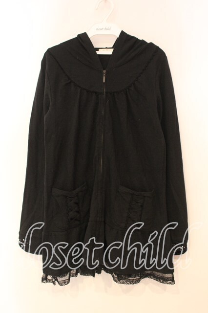 axes femme / レースアップポケットパーカー m クロ O-25-12-29-073-AX-TO-IG-OS