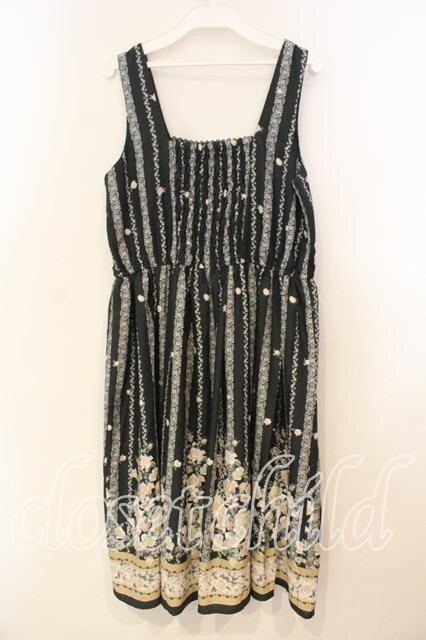 axes femme / バラパネル柄ワンピース M クロ O-25-12-29-021-AX-OP-OW-OS