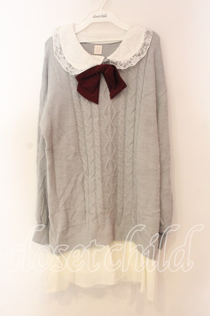 Secret Honey / ケーブル編みニット襟付きワンピース 0 グレーxシロ O-25-12-30-001-CA-OP-YM-OS