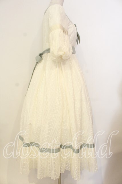 AmaStacia / Salley Gardens エンパイアウエストワンピース M アイボリー×グリーン O-25-12-30-062-PU-OP-OW-OS [戻る]