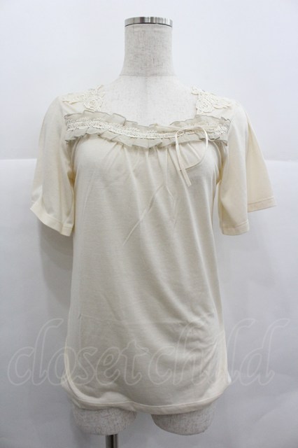 axes femme / 肩デザイン半袖インナーPO M キナリ I-25-12-29-043-AX-TO-SA-ZI
