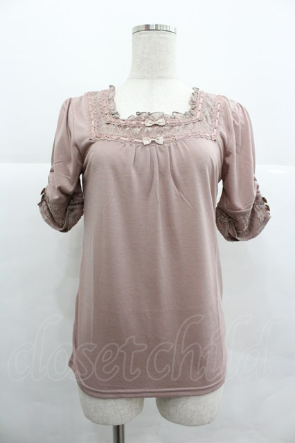 axes femme / リボン使い半袖インナーPO M アワピンク I-25-12-29-057-AX-TO-SA-ZI