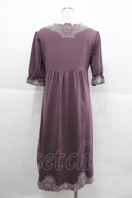 axes femme / フラワー刺繍半袖ワンピース パープルX白 I-25-12-29-080-AX-OP-SA-ZI