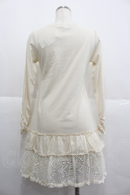 axes femme / 裾フリル&レース長袖ワンピース M アイボリー I-25-12-29-084-AX-OP-SA-ZI
