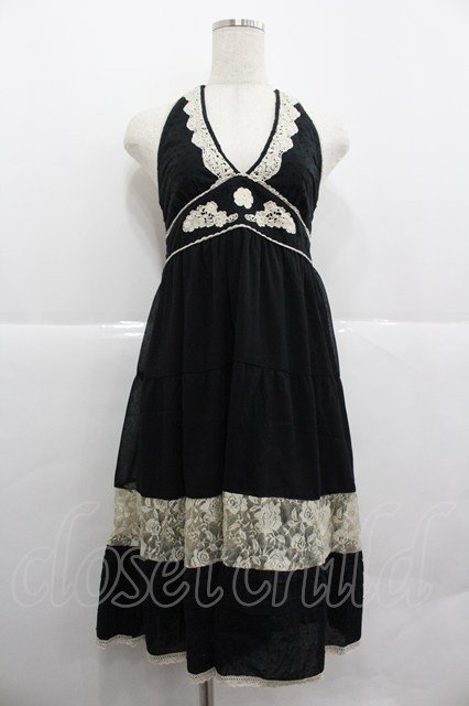 axes femme / ドット&レース切替ホルターネックチュニック 黒Xアイボリー I-25-12-29-085-AX-OP-SA-ZI