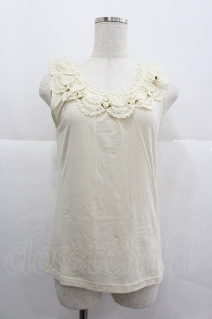 axes femme / バラ付レース襟タンク M キナリ I-25-12-29-010-AX-TO-SA-ZI