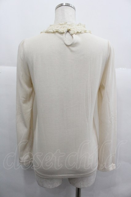 axes femme / 胸元レース切替カットソーブラウス M アイボリー I-25-12-29-041-AX-TO-SA-ZI