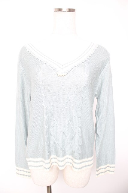 axes femme / ライン入りニット M サックス Y-26-01-01-036-AX-TO-SZ-ZY