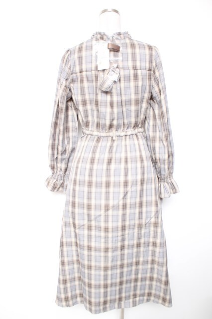 axes femme / プリーツ切替チェック柄ワンピース 生成り Y-26-01-01-099-AX-OP-SZ-ZY
