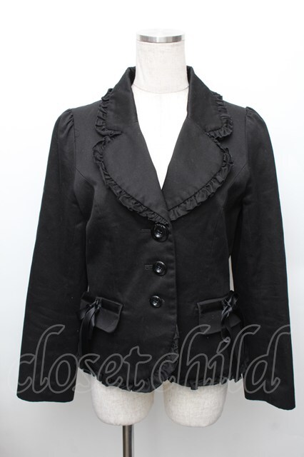 PEACE NOW / 襟フリルジャケット 黒 S-25-12-30-034-PU-JA-HR-ZS