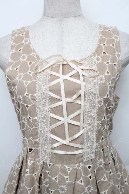 axes femme NOSTALGIE / 配色レースワンピース ベージュ S-25-12-30-046-AX-OP-HR-ZS