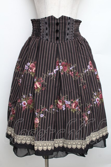 axes femme / レジメ花柄スカート 黒 S-25-12-30-054-AX-SK-HR-ZS