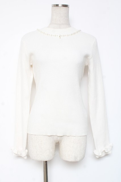 axes femme / パールネックレス風リブニット M 白 Y-26-01-05-049-AX-TO-SZ-ZY [戻る]