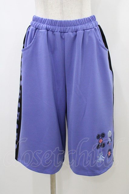 LISTEN FLAVOR / 麻雀ジャージハーフパンツ パープル×ブラック H-26-01-10-013-PU-PA-KB-ZH [戻る]