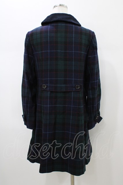 Jane Marple / オリジナルタータンのチェスターフィールドコート グリーン×ネイビー H-26-01-10-020-JM-CO-KB-ZH