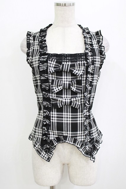 PEACE NOW / チェックリボンフリルビスチェ ブラック H-26-01-09-1032-PU-TO-KB-ZH