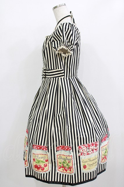 Emily Temple cute / ストライプ&ジャム瓶ワンピース クロ H-26-01-09-1003-ET-OP-KB-ZH