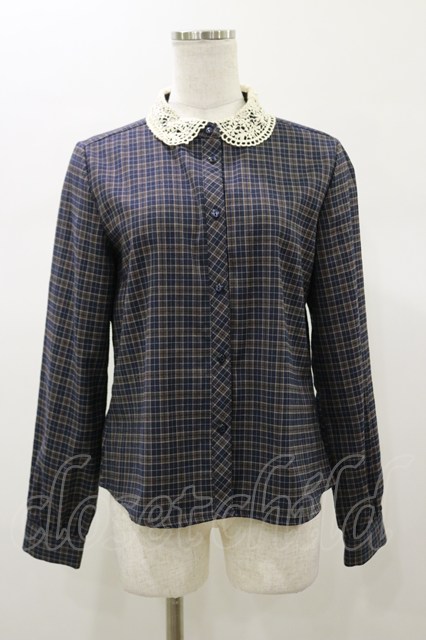 Fi.n.t / レース衿チェックシャツ Free NAVY×BR H-26-01-08-037-CA-BL-NS-ZH