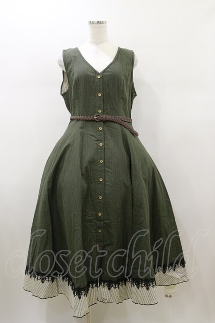Forest Song(海外ロリータブランド) / 灰緑の縦縞クラシカルジャンパースカート XL グリーン H-26-01-08-083-LO-OP-NS-ZH [戻る]