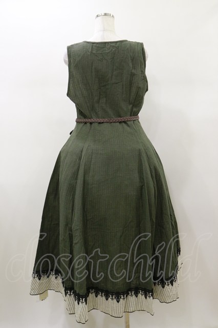 Forest Song(海外ロリータブランド) / 灰緑の縦縞クラシカルジャンパースカート XL グリーン H-26-01-08-083-LO-OP-NS-ZH