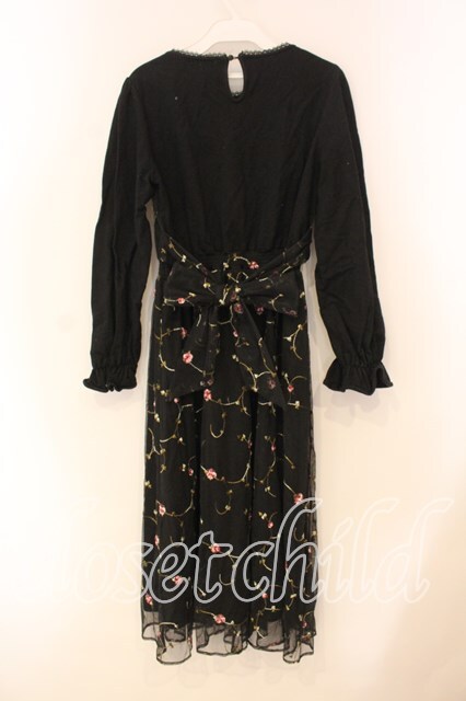 axes femme POETIQUE / チュール切替花柄ワンピース M クロ O-26-01-05-045-AX-OP-OW-ZT0107X [戻る]