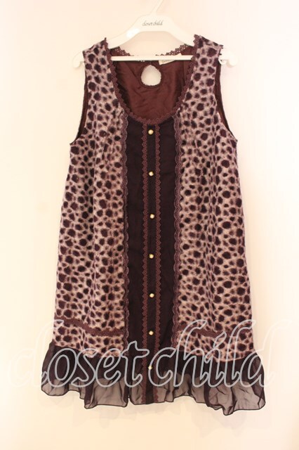 axes femme / ヒョウ柄切替チュニック M パープル O-26-01-05-068-AX-OP-OW-OS