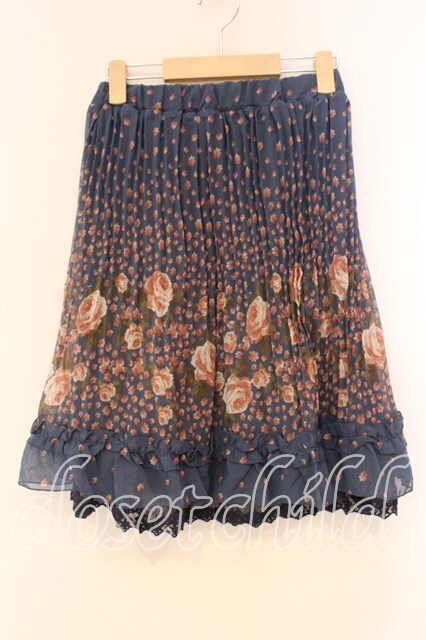 axes femme / 花柄スカート M ブルー O-26-01-05-076-AX-SK-OW-ZT0107X