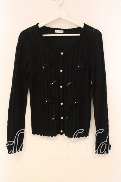 axes femme / リボン通しニットカーディガン M クロ O-26-01-05-057-AX-OP-OW-ZT0107X
