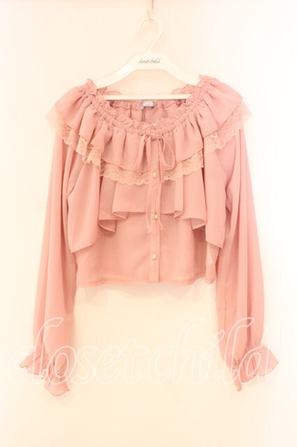 axes femme POETIQUE / オフショルシフォンブラウス M ピンク O-26-01-05-027-AX-BL-OW-OS