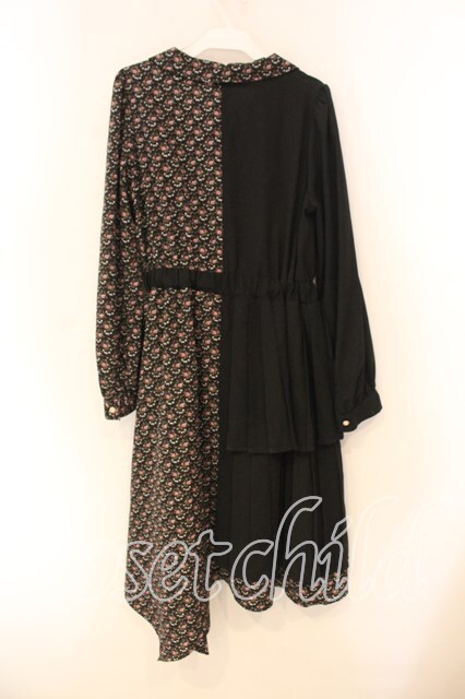 axes femme POETIQUE / フラワーバイカラーアシメワンピース M クロ O-26-01-05-039-AX-OP-OW-ZT0107X