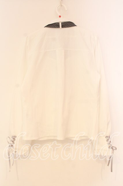 axes femme POETIQUE / 2WAYストライプタイ付ブラウス M シロ O-26-01-05-026-AX-BL-OW-ZT0107X