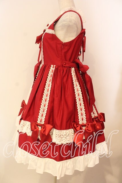 BABY,THE STARS SHINE BRIGHT / Ribbon Ribbon dropジャンパースカート えんじ×シロ O-26-01-05-003-BA-OP-IG-OS