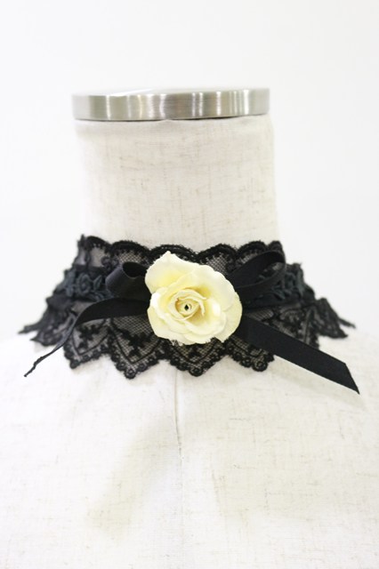 ATELIER PIERROT / ローズレースチョーカー ブラック×アイボリーローズ H-26-01-11-025-EL-AC-KB-ZH
