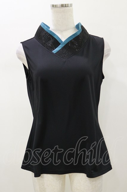 Qutie Frash / 着物衿インナータンク ブラック×ブルーグリーン H-26-01-11-037-QU-TO-KB-ZH