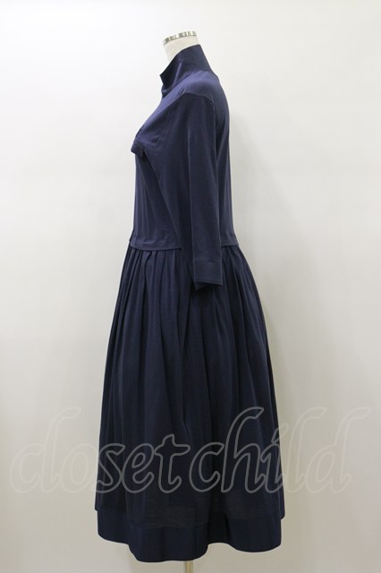 Jane Marple Dans Le Salon / シフォン天竺ジップアップドレス M ネイビー H-26-01-11-076-JM-OP-KB-ZH