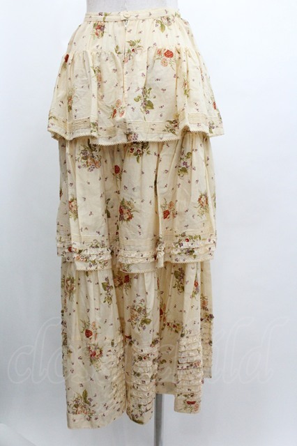 WONDERFUL WORLD / フラワープリント3段スカート アイボリー I-26-01-04-061-LO-SK-SA-ZI