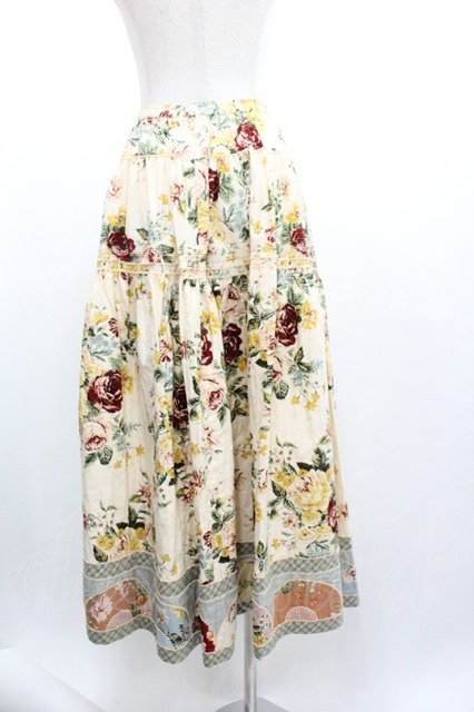 WONDERFUL WORLD / 薔薇ブーケ&裾半円パッチワークスカート アイボリー I-26-01-04-067-LO-SK-SA-ZI