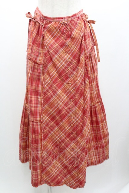 PINK HOUSE / チェック前開きスカート 赤Xオレンジチェック I-26-01-04-071-LO-SK-SA-ZI