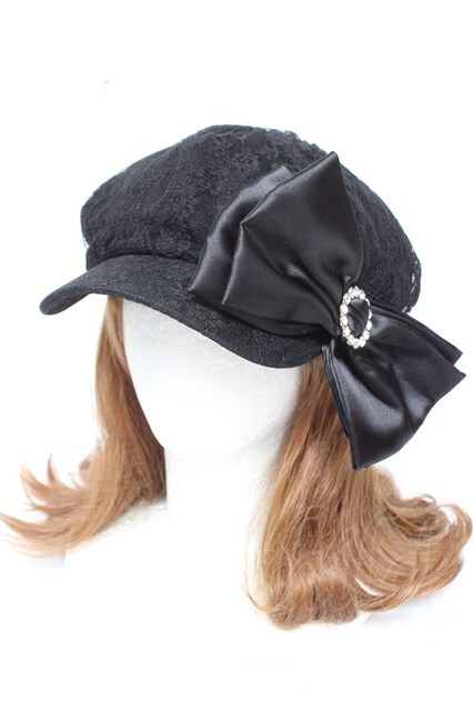 Princess Melody / きらきらリング付きおりぼんレースキャスケット 黒 Y-26-01-07-030-EL-AC-SZ-ZY [戻る]
