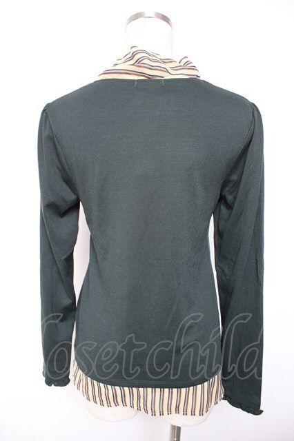 axes femme / ストライプレイヤード風トップス M グリーン Y-26-01-07-043-AX-TO-SZ-ZY