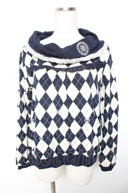 axes femme / アーガイル柄オフタートルプルオーバー M コン Y-26-01-07-060-AX-TO-SZ-ZY