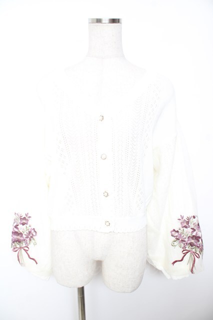 axes femme / フラワーブーケ刺繍カーデ M 生成り Y-26-01-07-074-AX-TO-SZ-ZY