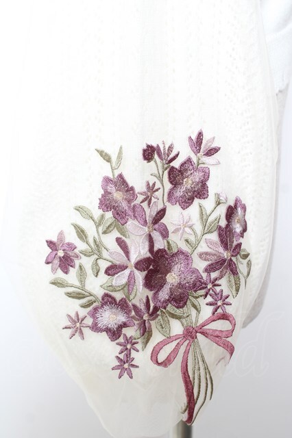 axes femme / フラワーブーケ刺繍カーデ M 生成り Y-26-01-07-074-AX-TO-SZ-ZY